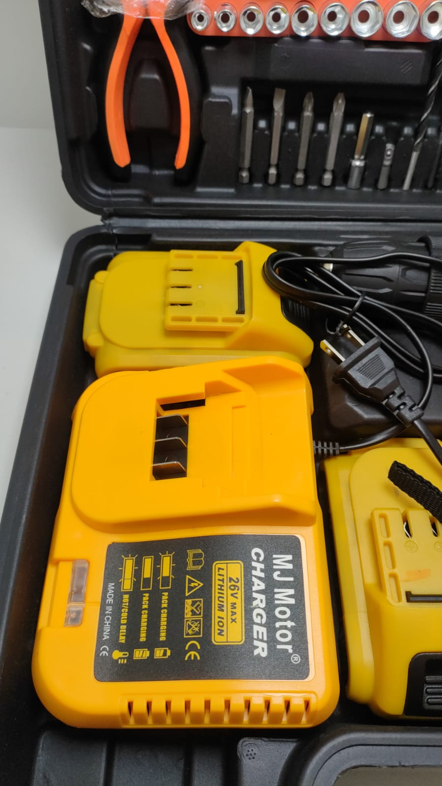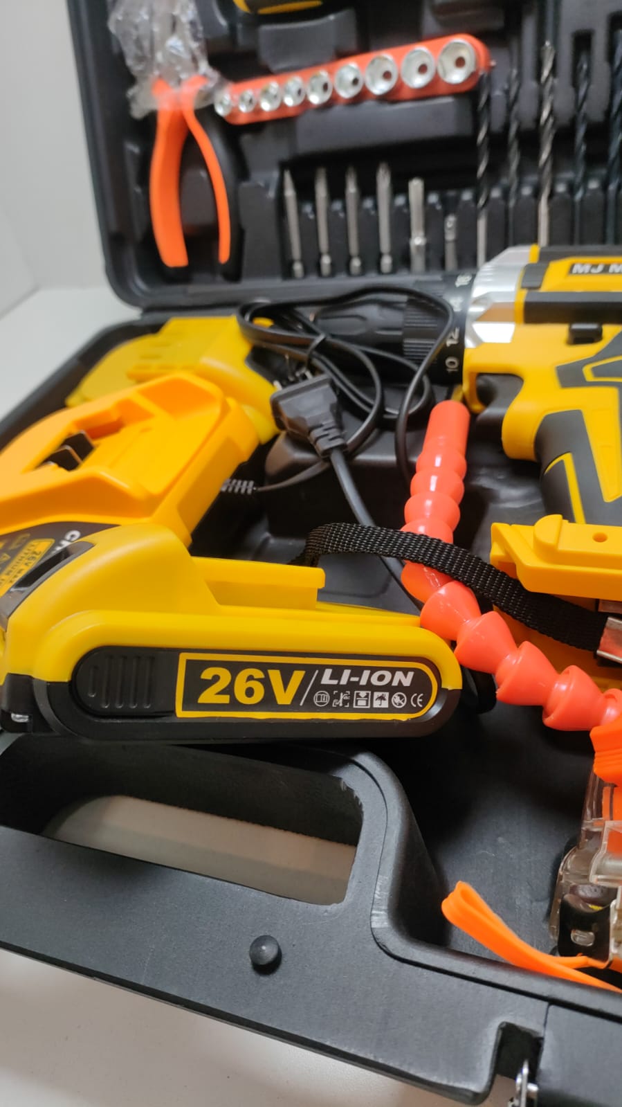 TALADRO DE 26 VOLTIOS CON 2 BATERIAS Y MALETA DE HERRAMIENTAS 34 PIEZAS