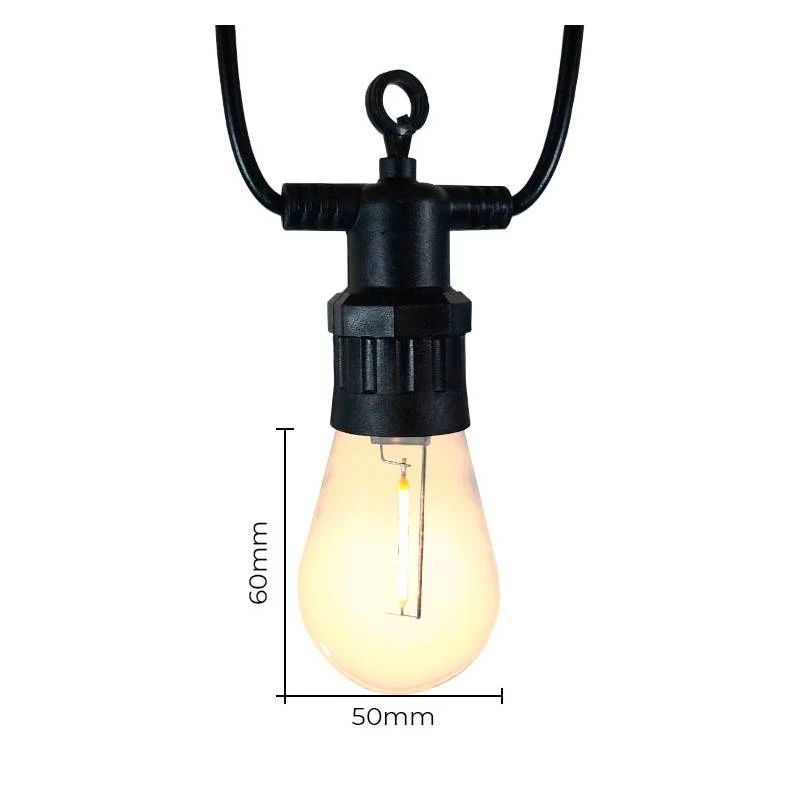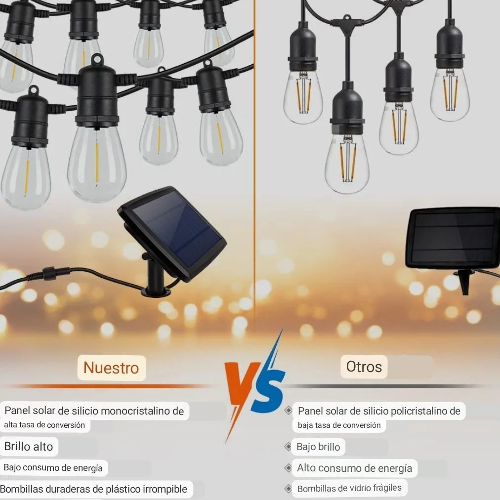 Presentamos la Guirnalda Solar 5mts con 10 focos vintage, la decoración perfecta para tu jardín, terraza o negocio.