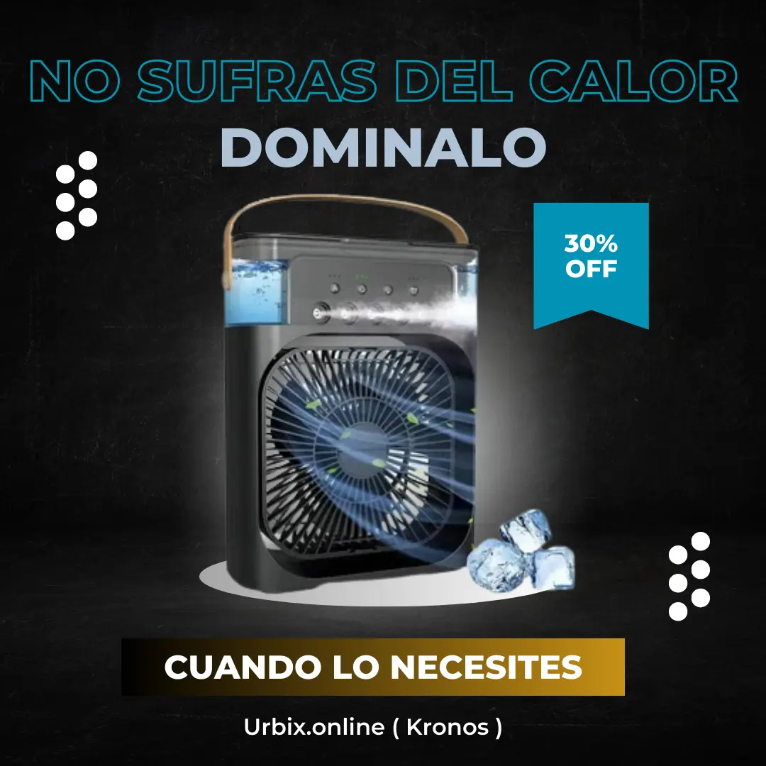 Combate el calor al instante con un sistema portátil que ventila, humidifica y refresca el ambiente en segundos.
