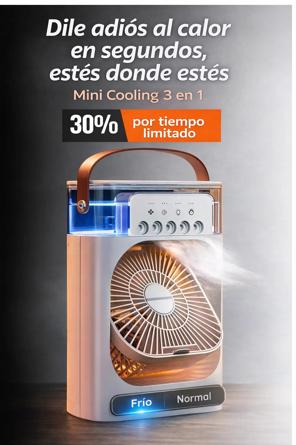El Mini Cooling 3 en 1 ventila, humidifica y refresca tu espacio en segundos, sin instalaciones, sin ruidos molestos y con consumo mínimo de energía.